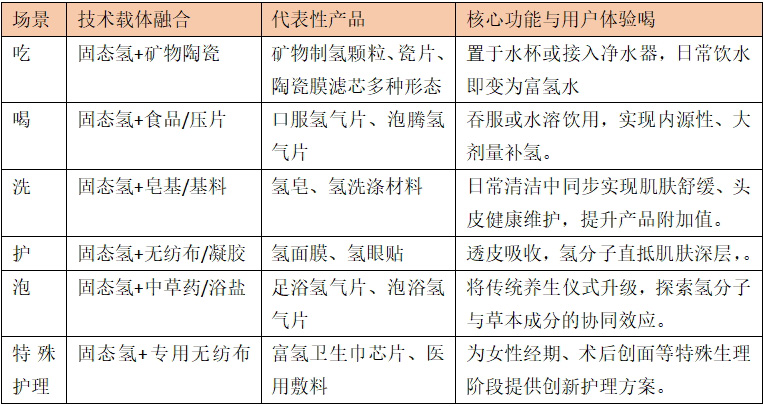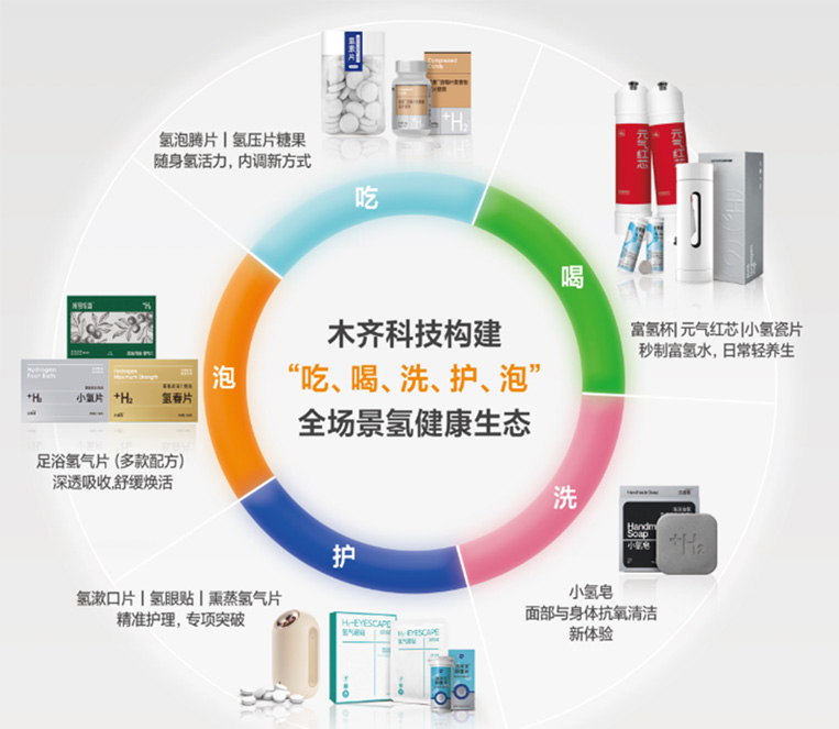 基于这一战略,木齐科技构建了独特的产品哲学:不做“制氢机器”,而做“含氢材料”。它将自身定位为“固态氢核心材料供应商”与“氢健康生活方案定义者”,专注于将自主研发的“HI氢素”原料,与现有成熟、安全的消费品载体进行深度融合,开创出固态氢消费品这个新赛道。这一定位使其产品具备了“功能无感嵌入”的特质:用户的首要需求是敷面膜、泡脚、喝水,氢气的释放是伴随主要过程悄然发生的健康增益,实现了健康干预的“生活化”与“自然化”。